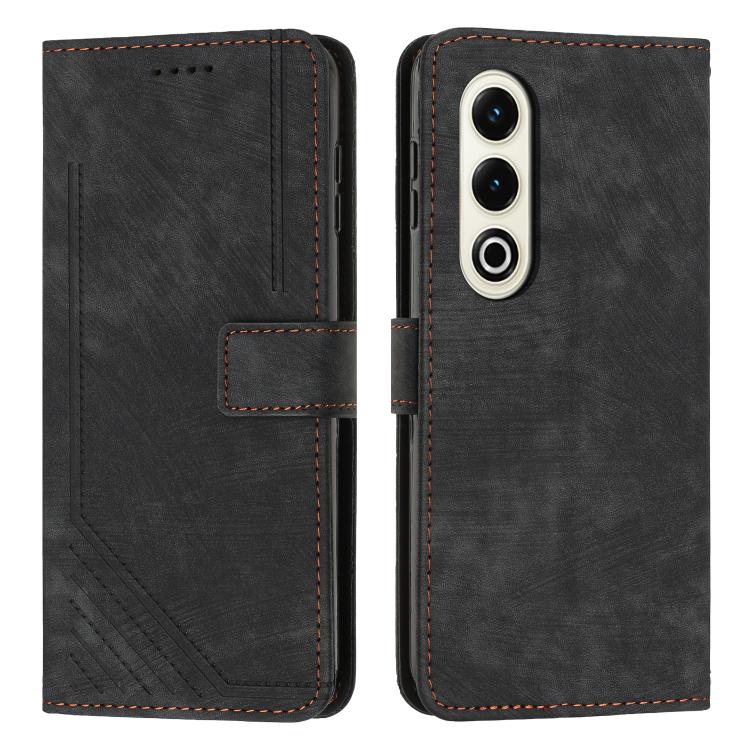 Funda de Cuero Itel S25 con Diseño de Rayas y Cordón para Teléfono (Negro)