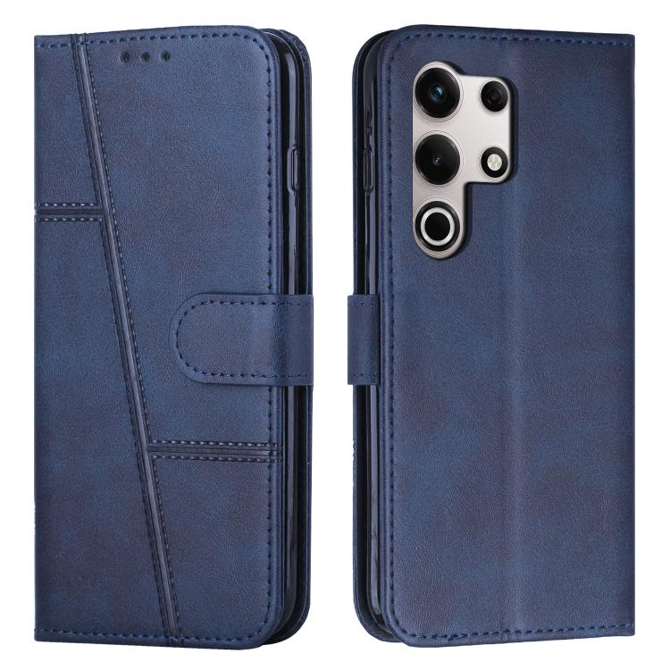 Funda de Cuero con Textura de Becerro y Costuras para Teléfono Itel S25 (Azul)