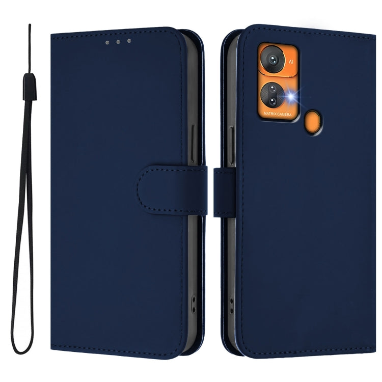 Funda de Piel Sintética con Cordón para Teléfono Oukitel C32 (Azul Oscuro)