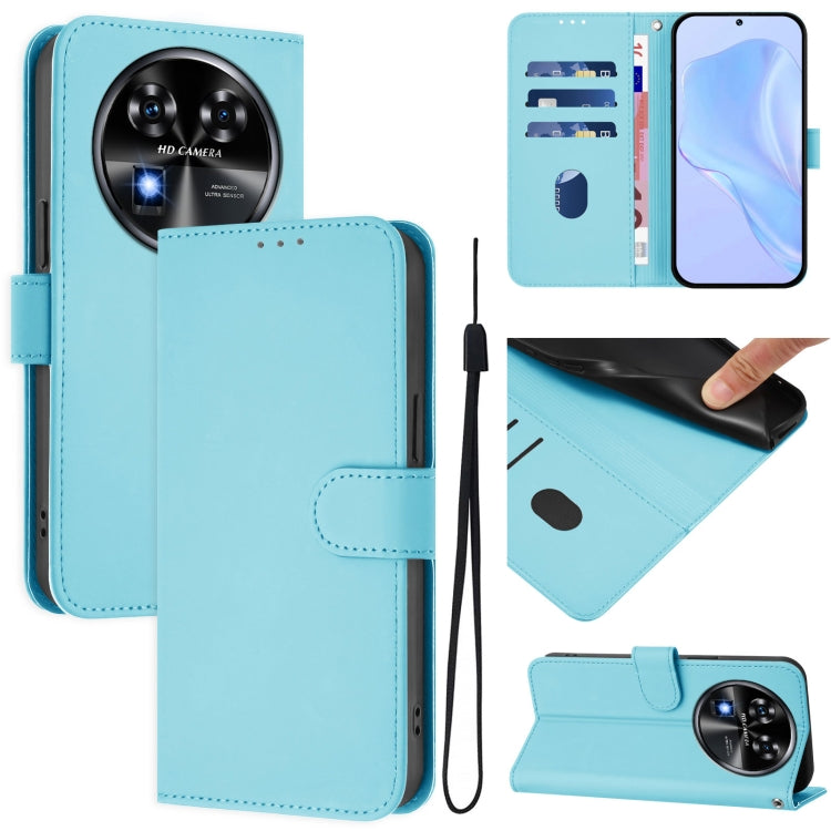 Funda de Piel Sintética con Cordón para Teléfono Oukitel C32 (Azul Cielo)