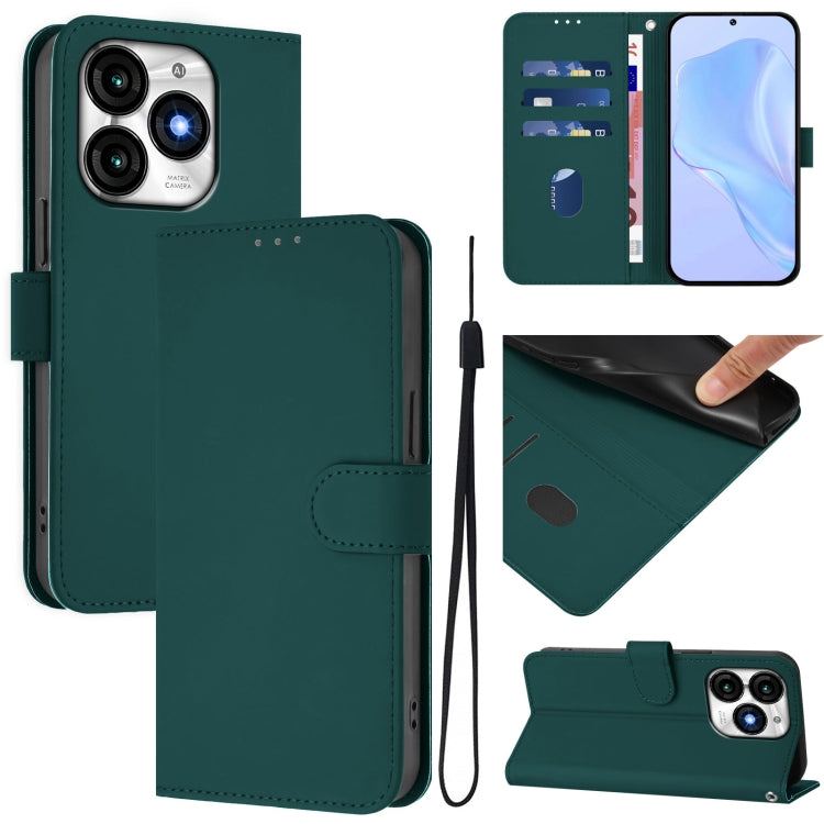 Funda de Piel con Cordón para Teléfono Itel S23+ Skin Feel (Verde Oscuro)
