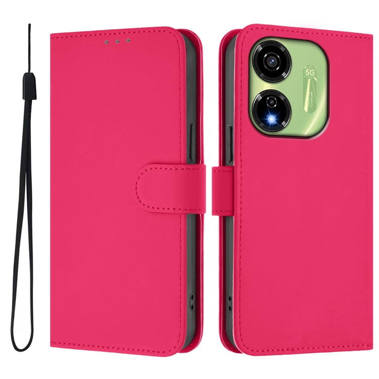 Funda de Piel con Cordón para Teléfono Itel S24 Skin Feel (Rosa y Rojo)