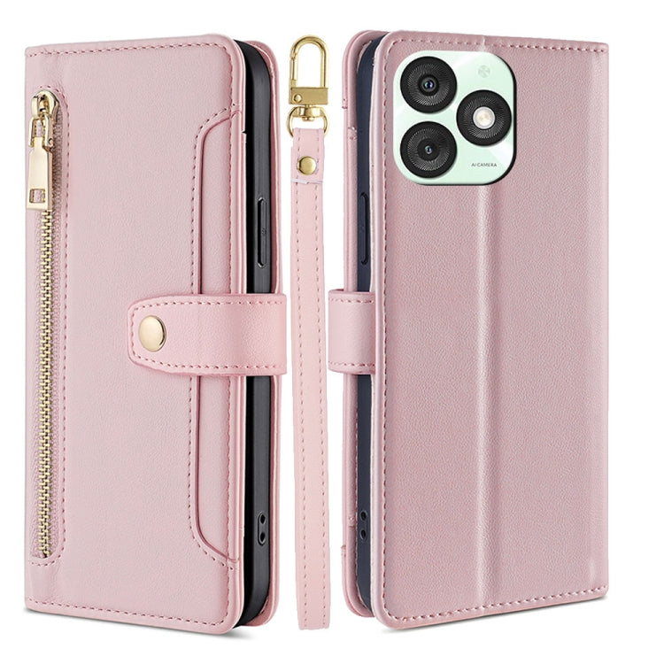 Funda Cuero Tipo Billetera con Cremallera y Diseño Oveja para Itel A50 4G (Rosa)