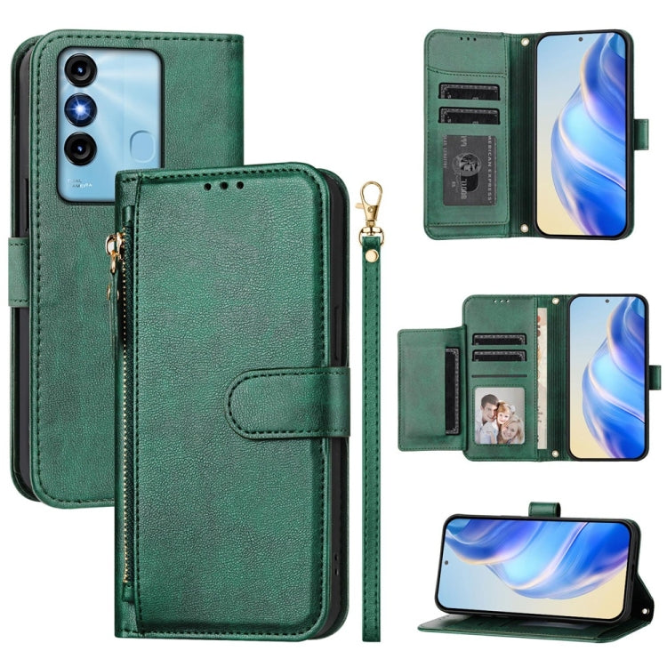 Funda de Cuero con Cremallera y Ranuras para Tarjetas para Itel P55 5G (Verde)