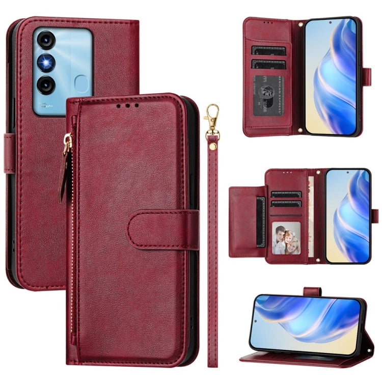 Funda de Cuero con Cremallera y Ranuras para Tarjetas para Itel A05S (Rojo Oscuro)