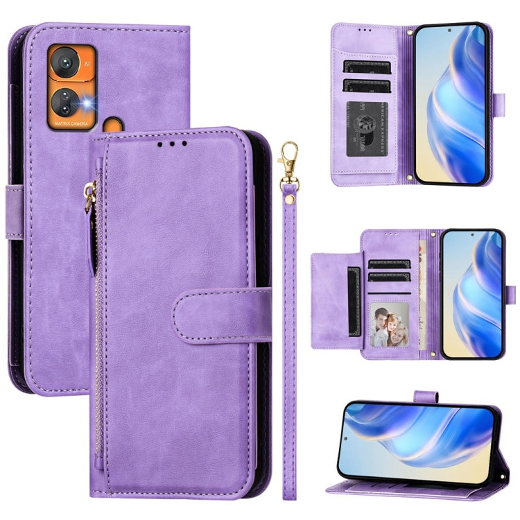 Funda de Cuero con Cremallera y Ranuras para Tarjetas para Itel A05S (Morado)