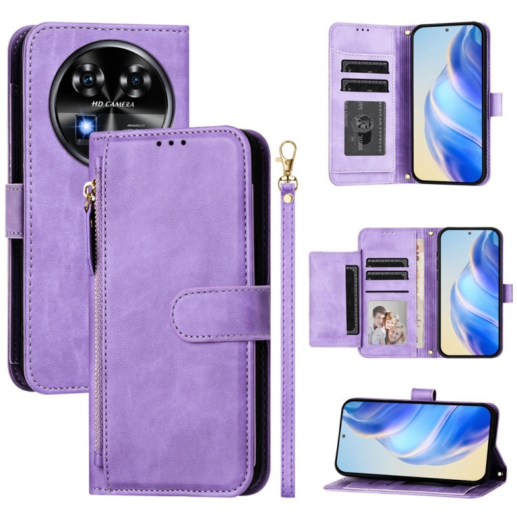 Funda de Cuero con Cremallera y Ranuras para Tarjetas para Itel A60/A60S (Morado)