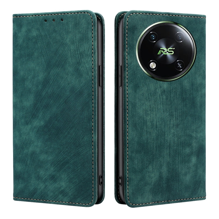 Funda de Cuero Magnética para Itel Rs4 4G con Protección RFID y Cepillo Antirrobo (Verde)