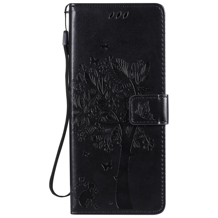 Funda de Cuero para LG G9 Tree & CAT con Tapa Horizontal, Soporte, Ranuras para Tarjetas y Cordón (Negro)