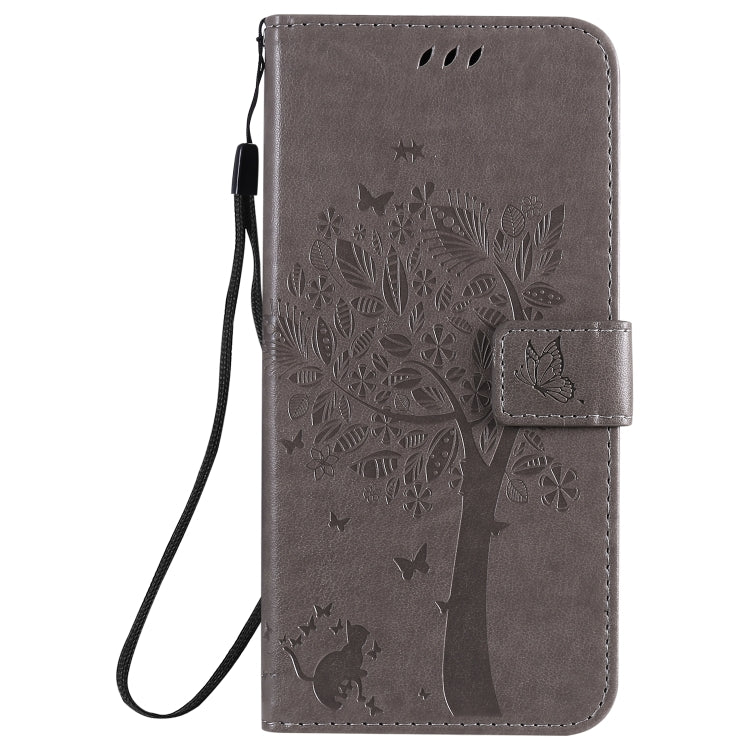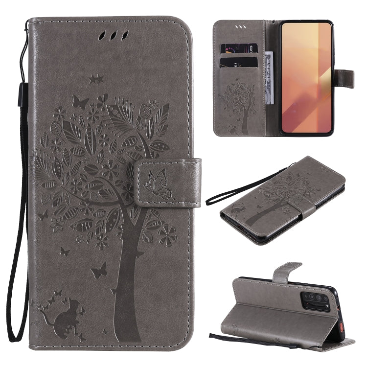 Funda de Cuero para LG K61 Tree & CAT con Tapa Horizontal, Soporte, Ranuras para Tarjetas y Cordón (Gris)