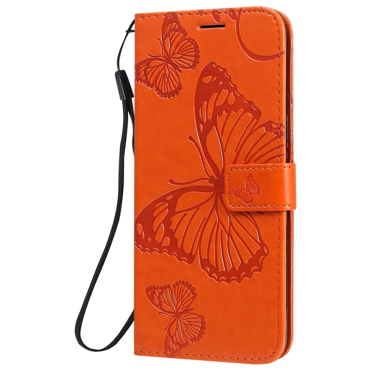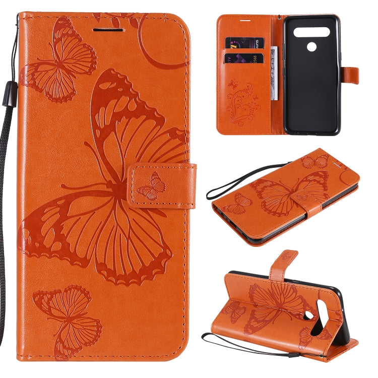 Funda de Cuero LG K61 3D Mariposa con Tapa Horizontal, Soporte, Ranura para Tarjeta y Billetera (Naranja)