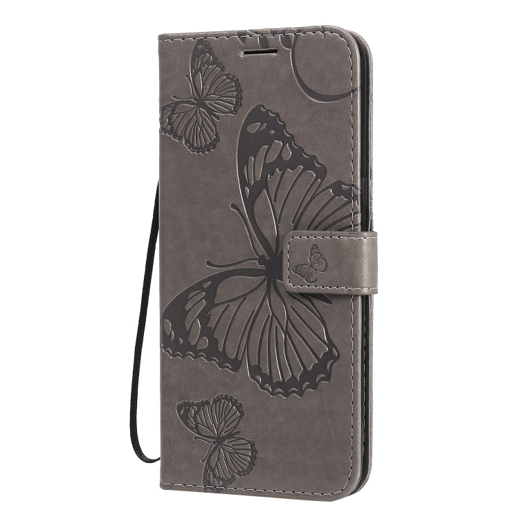 Funda de Cuero para LG K61 3D Mariposa con Tapa Horizontal, Soporte, Ranura para Tarjeta y Cordón (Gris)