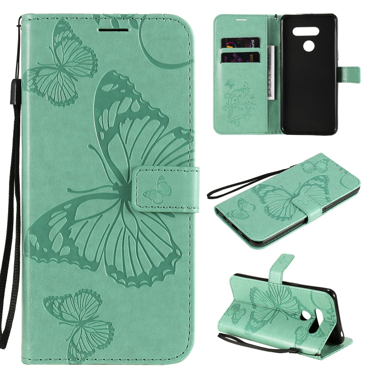 Funda de Cuero LG K61 3D Mariposa con Tapa Horizontal, Soporte, Ranura para Tarjeta y Cordón (Verde)