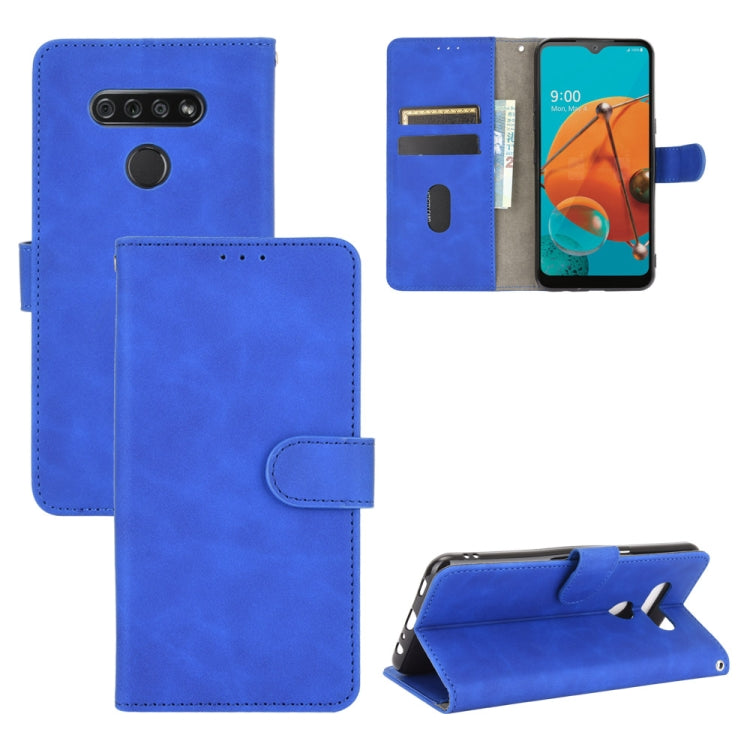 Funda Cuero PU para LG K50S con Soporte, Hebilla Magnética, Ranuras para Tarjetas y Billetera (Azul)