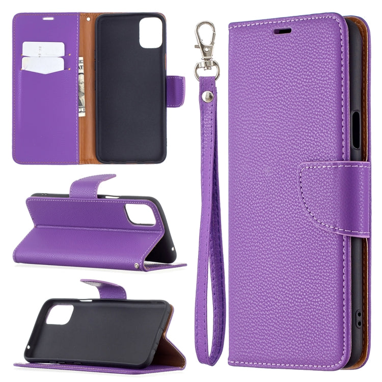 Funda de Cuero LG K42 Litchi Texture Flip Horizontal con Soporte, Tarjetero, Billetera y Cordón (Púrpura)