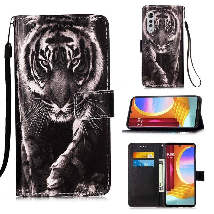 Funda de Cuero Horizontal Flip para LG Velvet 2 Pro con Titular, Tarjeta y Lanyard (Tigre Blanco y Negro)