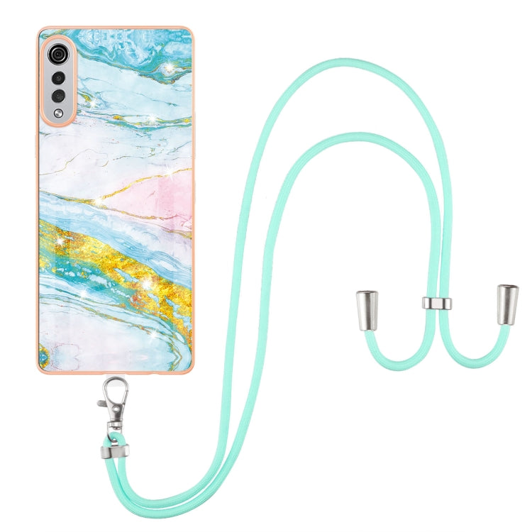 Funda TPU LG Velvet 4G 5G G9 Patrón Mármol Galvanoplastia Imd a Prueba de Golpes con Cordillero (Verde)