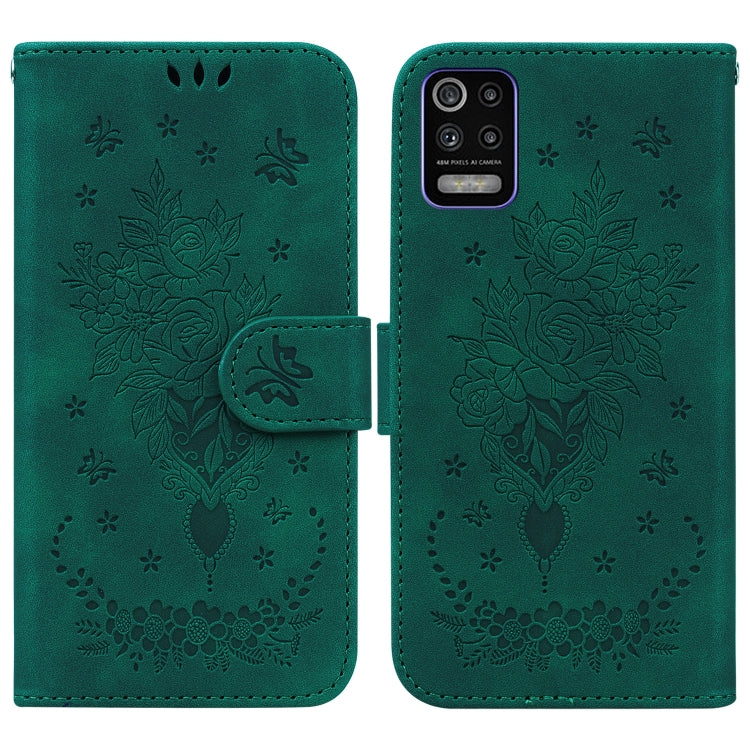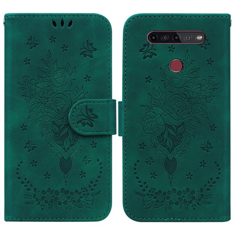 Funda para LG K50 / Q60 Butterfly Rose Rossed Foothip En Relieve de Cuero (Verde)
