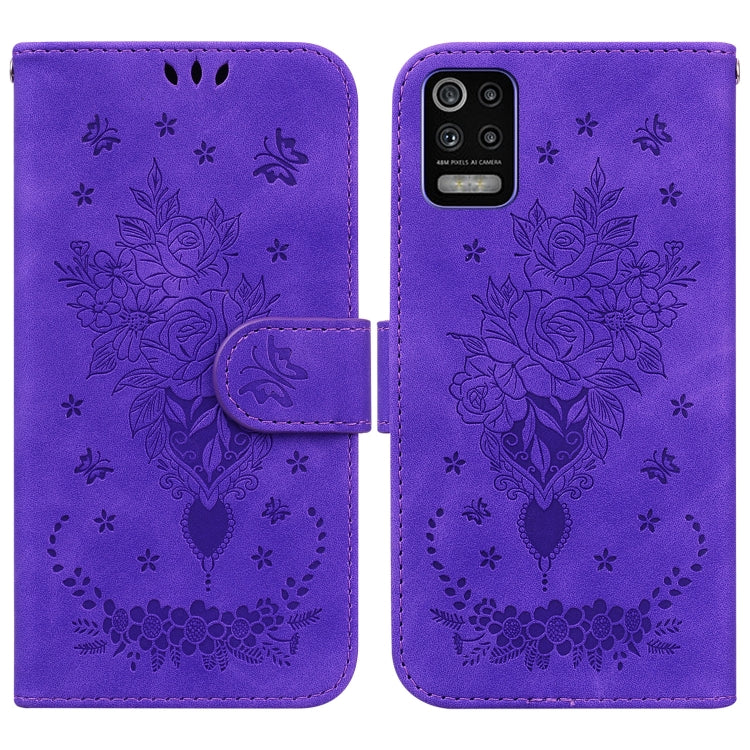 Funda Butterfly Rose para LG K52 / K62 / Q52 con Foothip Fase (Púrpura)
