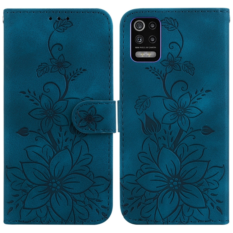 Estuche para Teléfono LG K52 K62 Q52 Cuero con Relieve de Lirio (Azul Oscuro)