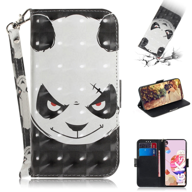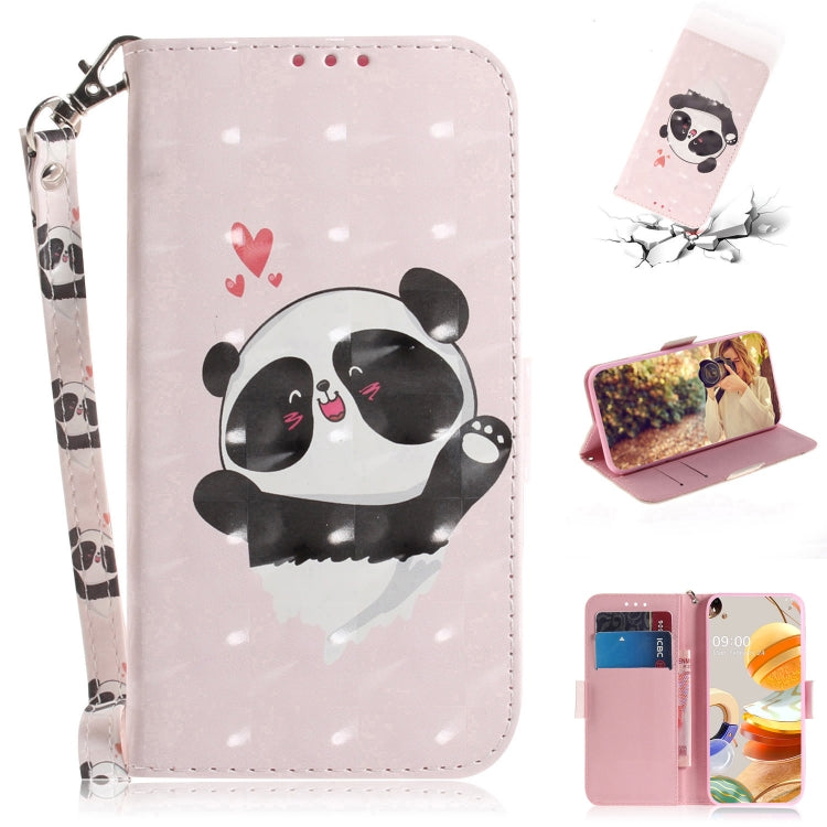 Funda de Cuero PU para LG K61 con Patrón 3D, Tapa Horizontal, Soporte, Ranuras y Cordón (Panda)
