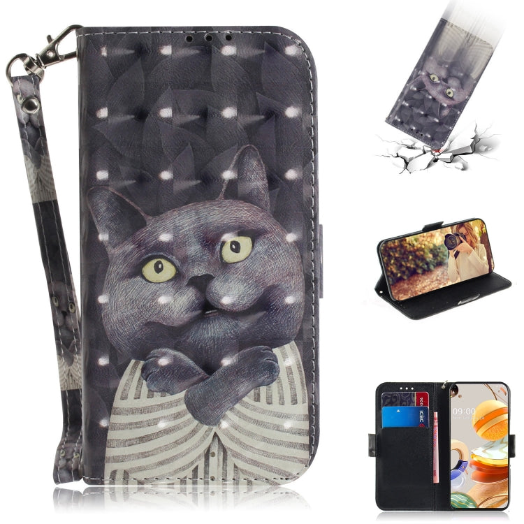 Funda de Cuero PU para LG K61 con Patrón 3D Gato, Tapa Horizontal, Soporte y Ranuras para Tarjetas