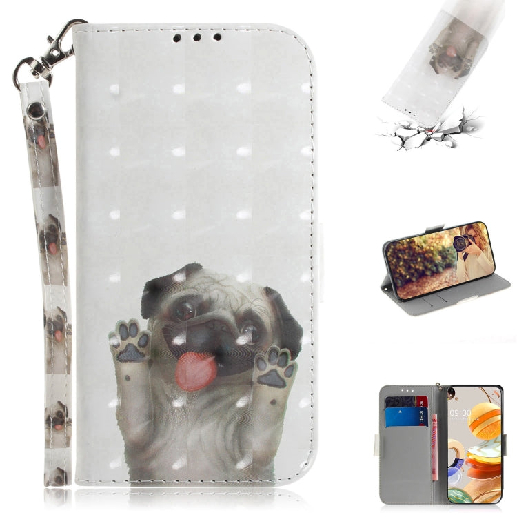 Funda de Cuero para LG K61 con Tapa Horizontal, Dibujo 3D, Soporte, Ranuras y Cordón (Pug)