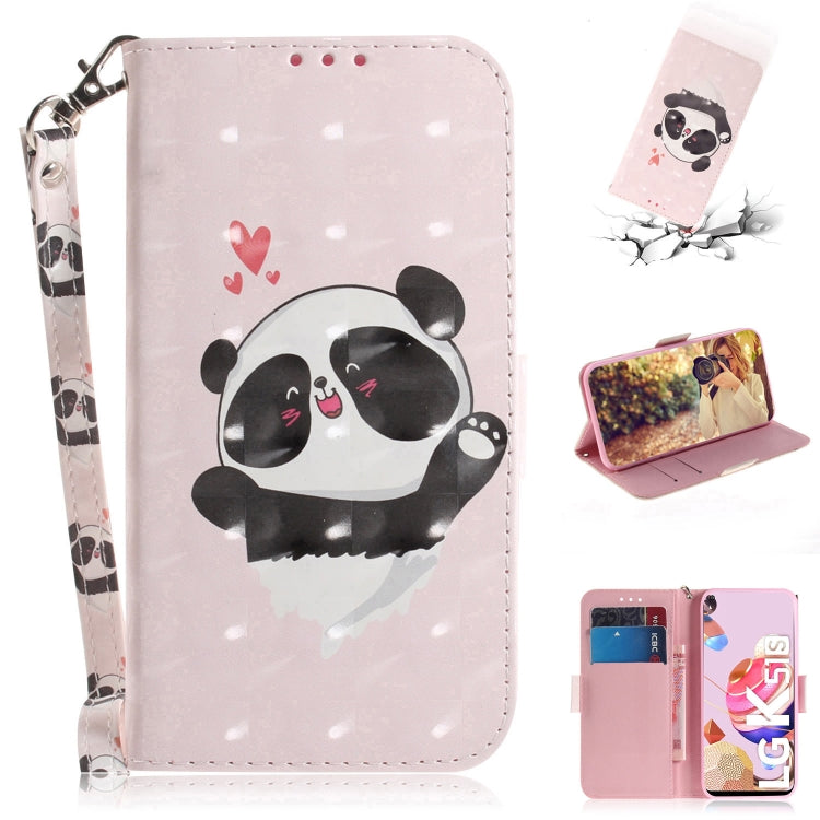 Funda Cuero Abatible Horizontal LG K41S K51S con Dibujo 3D Soporte Tarjetas Billetera Cordón (Heart Panda)