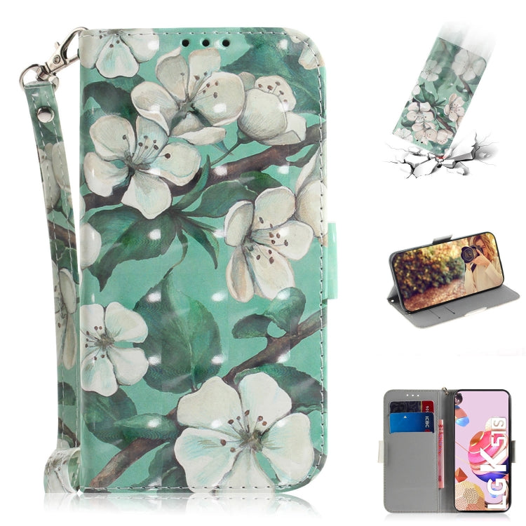 Funda de Cuero Abatible Horizontal para LG K61 con Dibujo 3D, Soporte, Ranuras y Cordón (Flor de Acuarela)