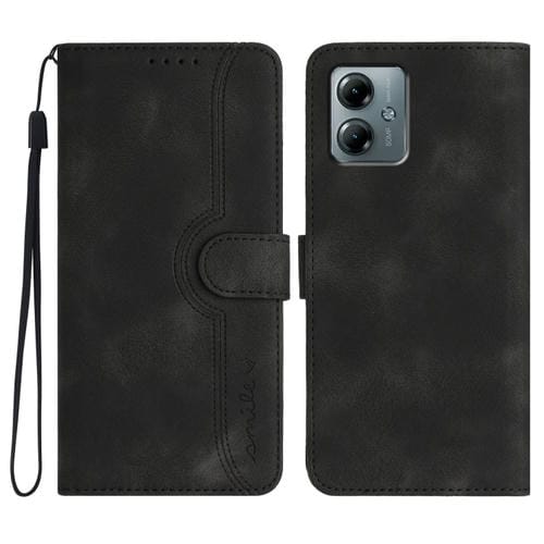 Funda de Cuero con Diseño de Corazón para Motorola Moto G Play 2025 / G Power 2025 (Negra)