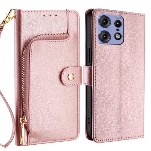 Funda de Cuero con Cremallera para Motorola Edge 50 Pro 5G (Oro Rosa)