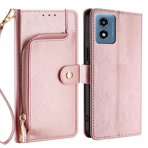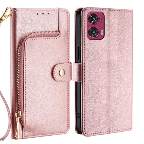 Funda de Cuero con Cremallera para Motorola Moto G 5G (2024) (Oro Rosa)