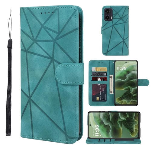 Funda de Cuero para Motorola Moto G35 con Líneas Geométricas y Tacto Suave (Verde)