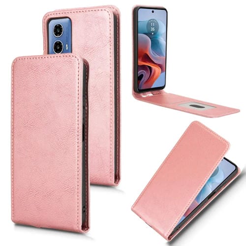 Funda de Cuero con Tapa Vertical Magnética para Motorola Moto G55 5G (Oro Rosa)