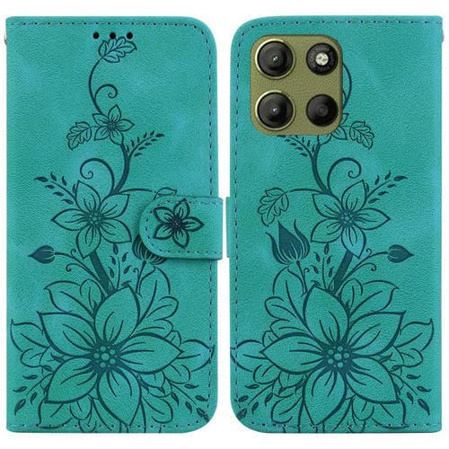 Funda de Cuero con Relieve de Lirio para Motorola Moto G15 (Verde)