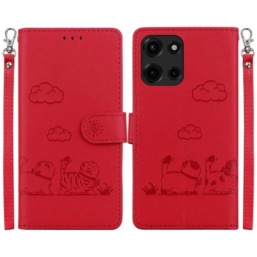 Funda de Cuero Motorola Moto G 5G 2025 Little Tiger Repujado (Rosa Rojo)