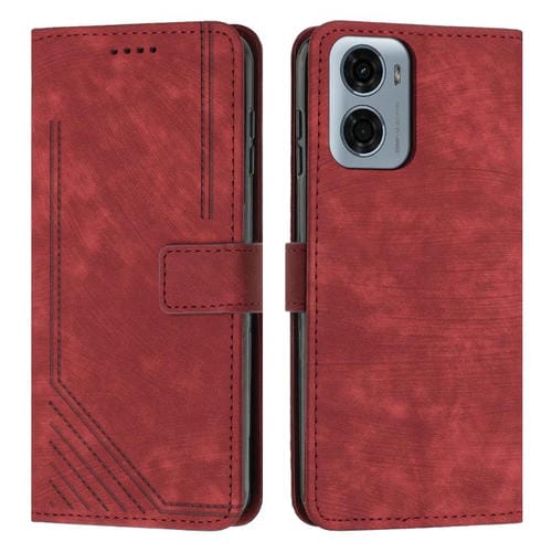 Funda de Cuero para Motorola Moto G05 con Diseño de Rayas y Tacto Sedoso (Rojo)