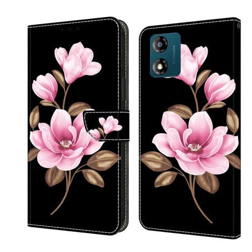 Funda de Cuero Pintada a Mano para Motorola Moto E13 (Flores Negras)