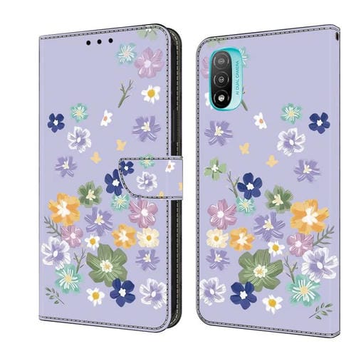 Funda de Cuero Pintada a Mano para Motorola Moto E20 (Floral Morado)