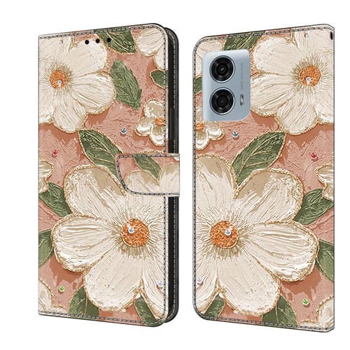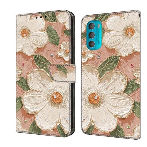 Funda de Cuero Pintada a Mano Motorola Moto G Power 5G 2023 (Flores Beige)