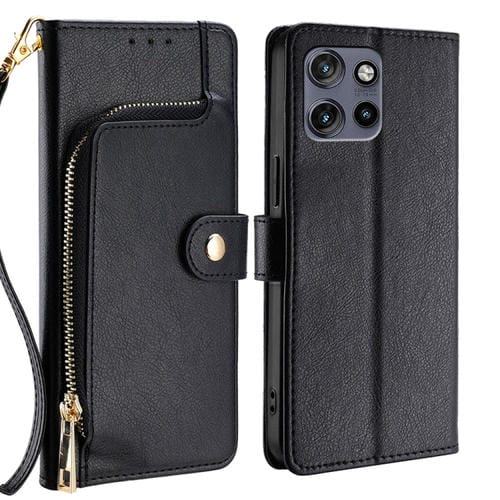 Funda de Cuero con Cremallera para Motorola Edge 50 Neo 5G (Negro)