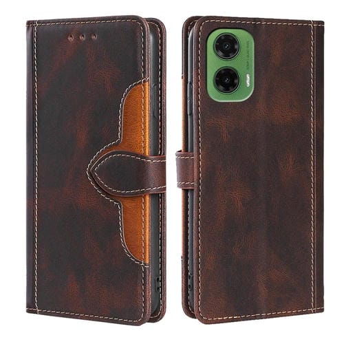 Funda de Cuero con Relieve y Costuras para Motorola Moto G05 (Marrón)