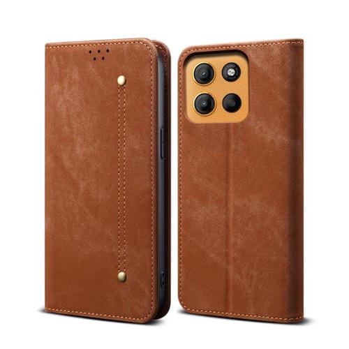 Funda de Cuero con Tapa y Textura Vaquera para Motorola Moto G15 (Marrón)