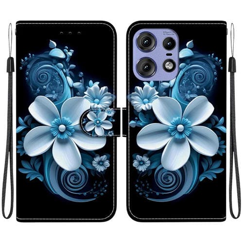 Funda de Cuero con Dibujo de Colores y Textura de Cristal para Motorola Edge 50 Pro (Orquídea Negra)