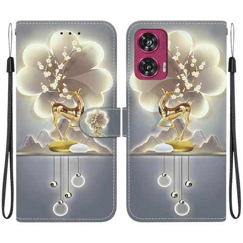 Funda de Cuero para Motorola Edge 50 Fusion con Dibujo de Colores y Textura de Cristal (Ciervo Sika)