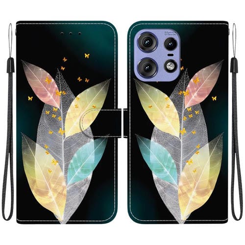 Funda de Cuero para Motorola Edge 50 Pro con Dibujo de Hojas de Colores y Textura de Cristal