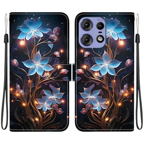 Funda de Cuero con Dibujo y Textura de Cristal para Motorola Edge 50 Pro (Flor de Linterna Pequeña)