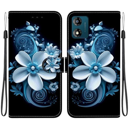 Funda de Cuero para Motorola Moto E13 con Dibujo de Colores y Textura de Cristal (Orquídea Negra)