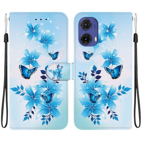 Funda de Cuero para Motorola Moto G85 con Dibujo de Colores y Textura de Cristal (Mariposas Azules)