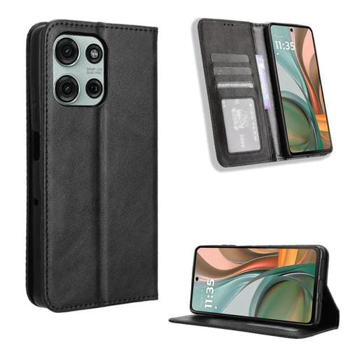 Funda de Cuero Motorola Moto G75 5G Textura Retro Hebilla Magnética (Negra)